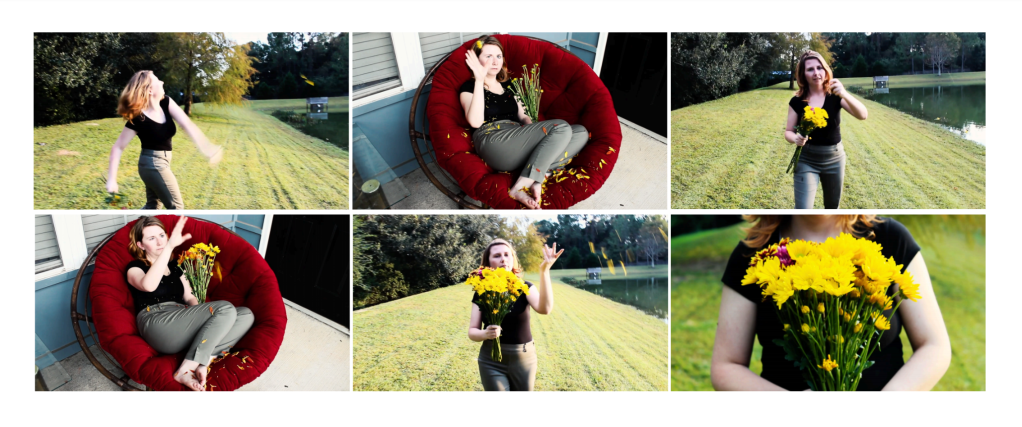 I am fascinated by video art as it allows one to build and experience a new reality. I often push the limits of the camera to find new ways to distort or bend the camera’s abilities. After shooting video, I edit with Adobe Premiere Pro and After Effects. The final video is then projected over sculptures and/or nature so that it may be appreciated as both a two-dimensional and three-dimensional form.