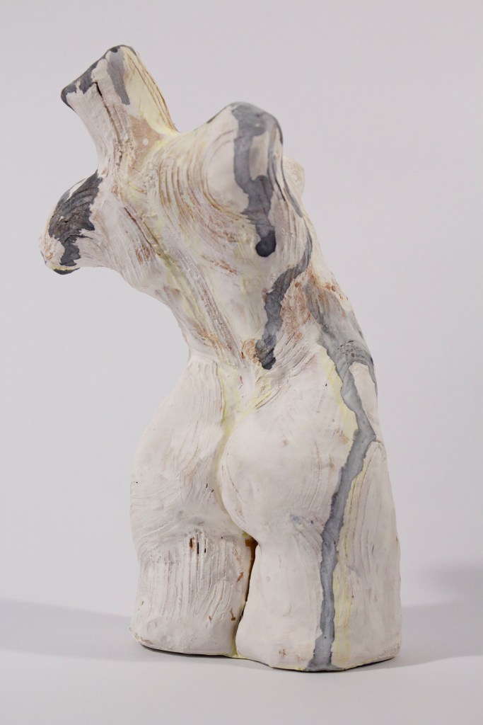 My primary medium is ceramics which I use to make both utilitarian and sculptural forms. The shape of the human body and plant life often inspire the forms. The surface of my functional structures provides a canvas for experimental drawing and glazing. The sculptures are glazed in a subdued color pallet to emphasize their form. To convey my more internal thoughts and emotions, I use natural forms such as flora and fauna along with female figures to both explore themes of women in nature and act as a self-portraiture.